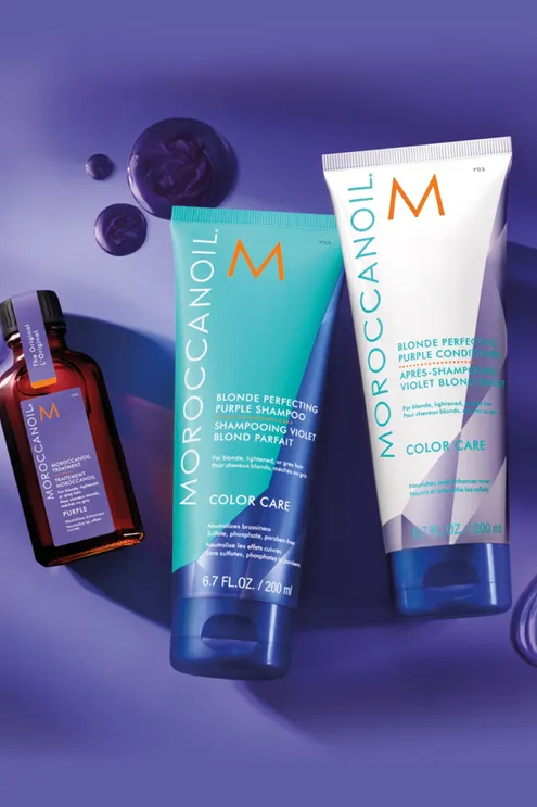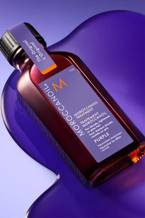 Le Soin Moroccanoil PURPLE est une huile de soin capillaire enrichie en pigments violets pour corriger la tonalité des cheveux blonds, méchés ou gris. Neutralise les reflets cuivrés et entretient le blond au quotidien.