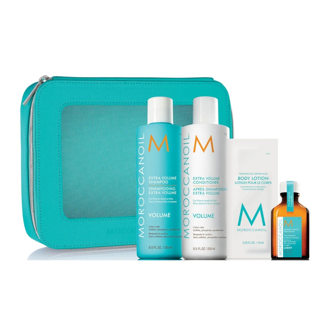 Cette trousse contient : 1 Shampoing Volume 250ml, 1 Après-shampoing Volume 250ml, 1 Huile Light 25ml et 1 Body Lotion 10ml.